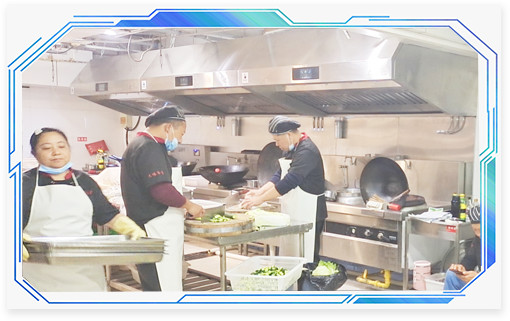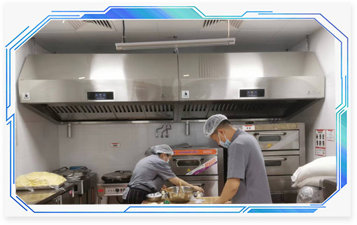 北京西平莊百姓大食堂為了支持響應(yīng)國家“藍(lán)天保衛(wèi)戰(zhàn)”政策,整個大食堂都采用的這種壹指藍(lán)環(huán)保油煙機(jī)設(shè)備,不僅不用向外部排放油煙,還給廚房人員更好的工作環(huán)境,更健康的身體。